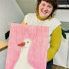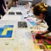 Nach Fertigstellung des Motivs, baut jeder Teilnehmer seinen eigenen Keilrahmen unter Anleitung zusammen und bespannt seinen Keilrahmen mit dem gestaltetet Motiv.
