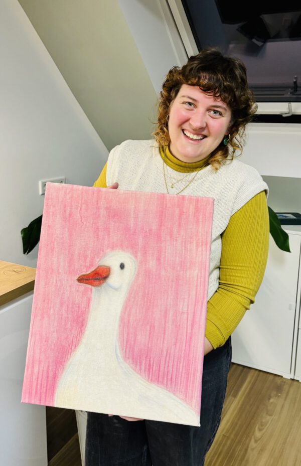 Am Ende des Tages gehst du mit deiner Pastellkreidezeichnung auf Leinwand nach Hause.